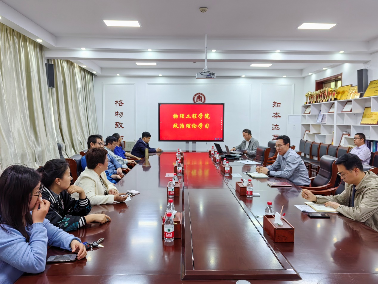 教职工政治理论学习会,光电信息科学与工程系主任曹洪忠老师领学了中央党的建设工作领导小组召开会议研究部署党纪学习教育工作的重要精神和《中国共产党纪律处分条例》第二编第六章,随后,与会教职工结合工作实际进行了热烈讨论。