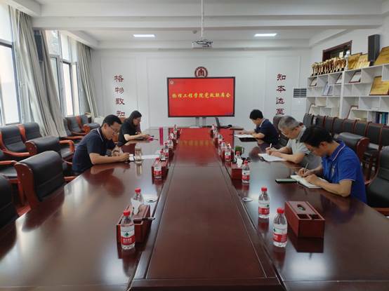 在物理楼225会议室召开党政联席会议,学院领导班子全体成员参加了会议。
